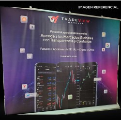Display publicitario Roll Up Banner de aluminio importado para pequeñas áreas de exposición; especial para eventos, ferias, expos, congresos. También llamados Roll Screen